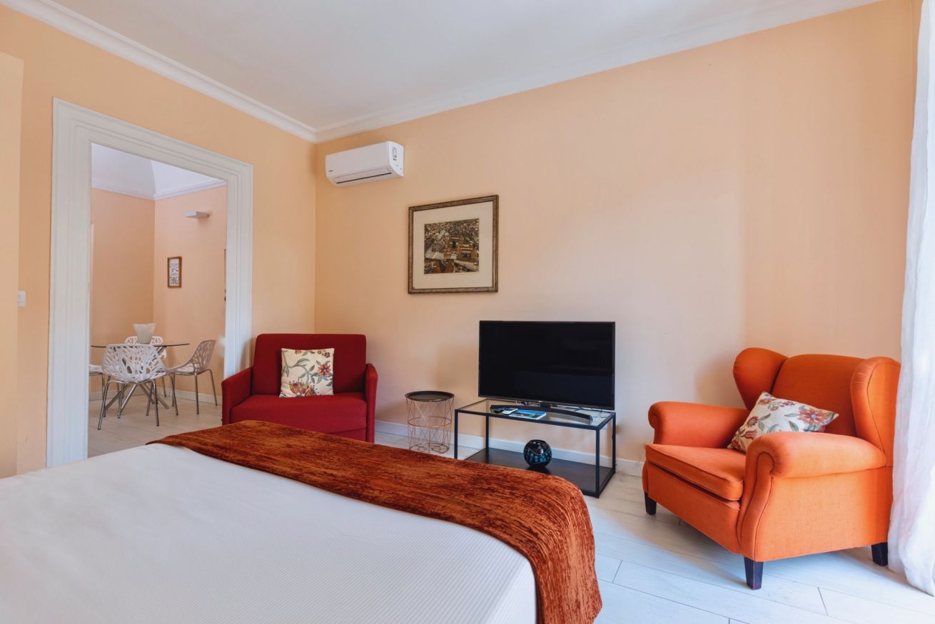 Porta Carini è una splendida camera King composta da un'ampia camera da letto matrimoniale, un balcone panoramico con vista su Porta Nuova, una zona pranzo con piccola cucina dotata di forno e piastre ad induzione, un bagno con ampia doccia. La camera è inoltre fornita di Smart TV, macchina Nespresso, wifi, set di cortesia e pantofole, riscaldamento e aria condizionata. Accesso tramite ascensore. È possibile aggiungere un letto per un bambino.